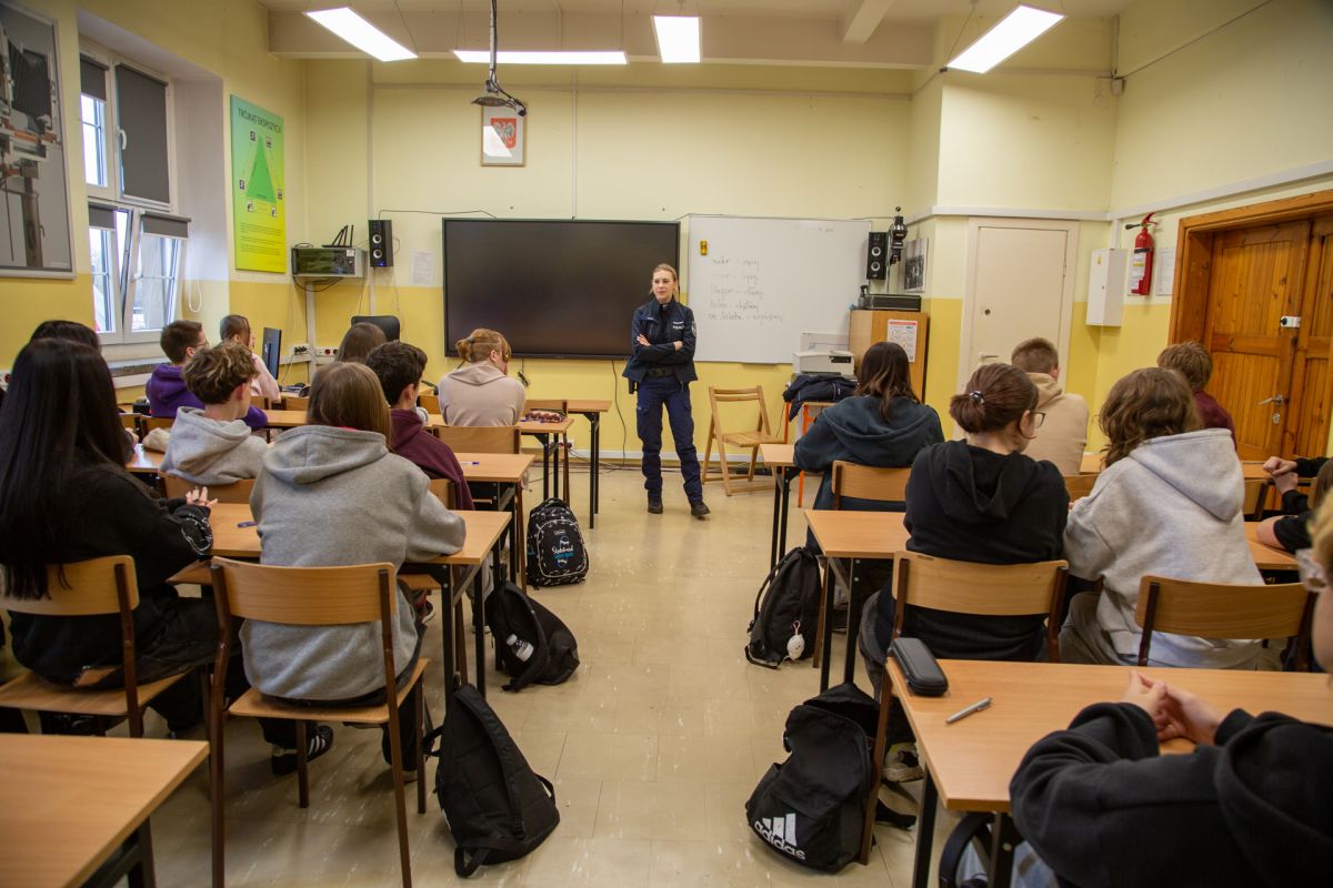 W listopadzie 2025 r. w naszej szkole odbywały się spotkania związane z profilaktyką i zapobieganiem przestępstwom. Uczniowie klas pierwszych i drugich mieli okazję porozmawiania z funkcjonariuszką Komendy Powiatowej Policji w Bolesławcu, panią Weroniką Dudek.