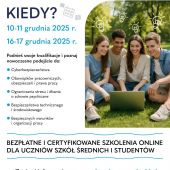 W dniach 10-11.12.2025 uczniowie klas 3W i 3F wzięli udział w szkoleniu online, na którym poruszane były najważniejsze zagadnienia od cyberbezpieczeństwa po ergonomię pracy.
