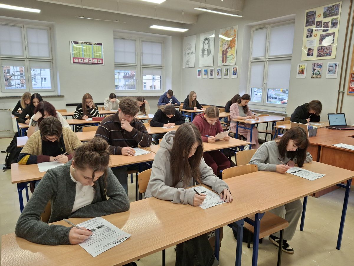 W czwartek 20.11.2025 r. w naszej szkole odbył się Powiatowy Konkurs Języka Niemieckiego. W etapie szkolnym udział wzięło 18 uczniów z klas 1-5 Technikum. Konkurs, organizowany przez Powiatowe Centrum Edukacji i Kształcenia Kadr w Bolesławcu, miał na celu promowanie nauki języka niemieckiego oraz rozwijanie kompetencji językowych młodzieży. Jednocześnie popularyzowano kulturę krajów niemieckojęzycznych, a uczniowie mieli okazję wykazać się swoimi umiejętnościami, kreatywnością i twórczy myśleniem.
